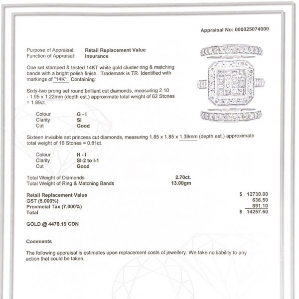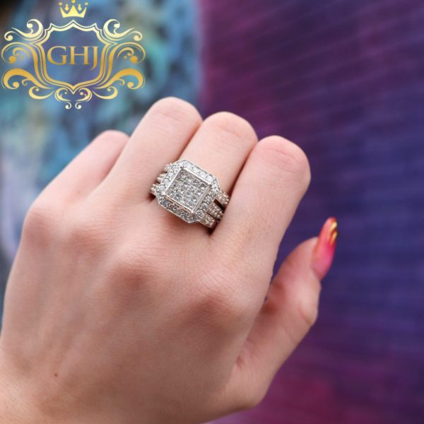 Diamond Princess Cut Cluster Ring With Two Matching Bands !