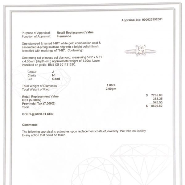 Princess Cut Diamond Ring #99 1.00ct- Diamond Ring