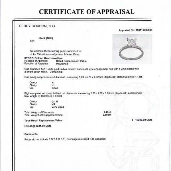 Princess Cut Solitaire 1.49ct #100 – Engagement Ring