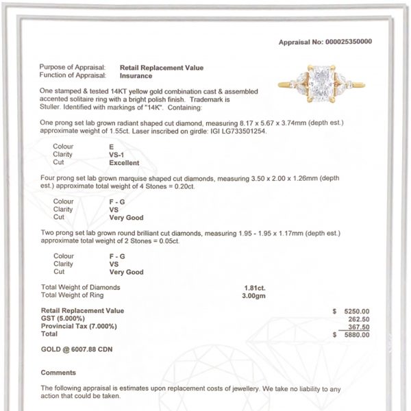 Radiant 1.8ct Lab #280 – Diamond Ring