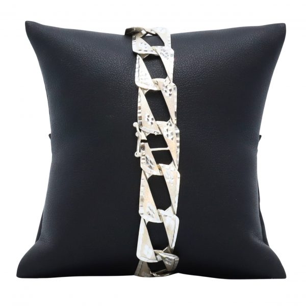Rectangle Diamond Cut 12.75mm 9″- Silver Bracelet