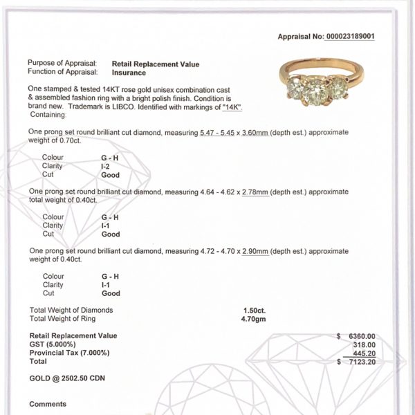 Three Stone Diamond Ring on Rose gold high polish finish band