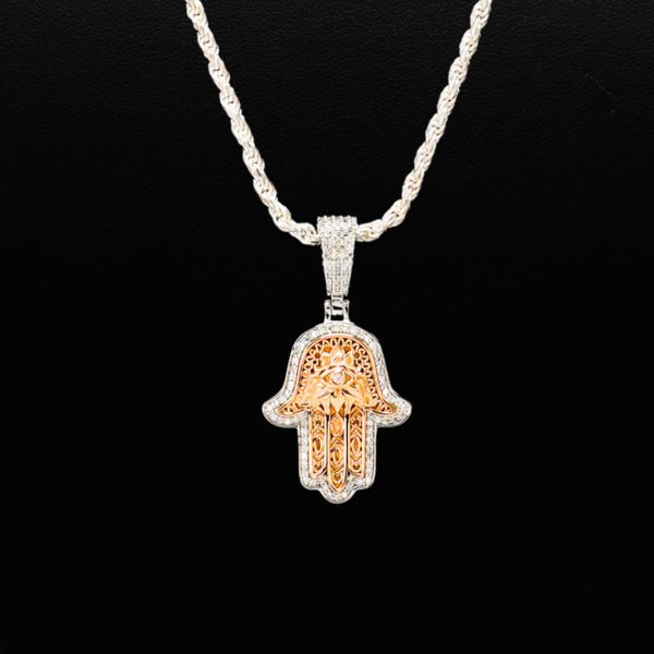 Moissanite Stone Rose Hamsa Pendant !
