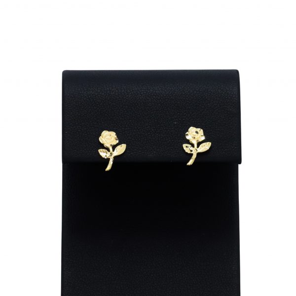 Rose earrings with stem. Detailed with diamond cut leaves.