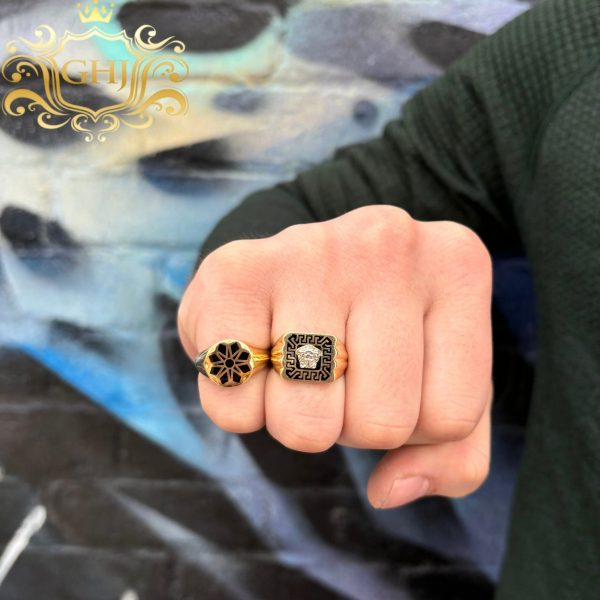 Round Detailed Black Enamel Ring