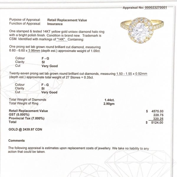 Total carat weight of centre stone: 1.09ct