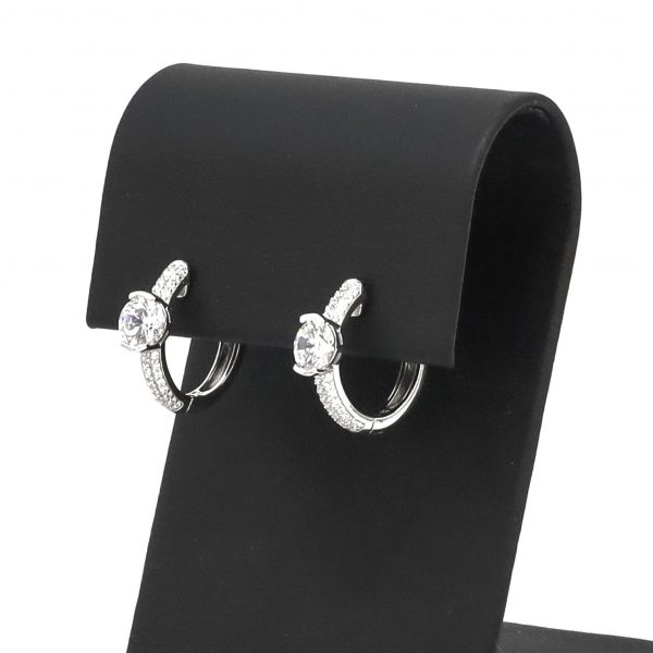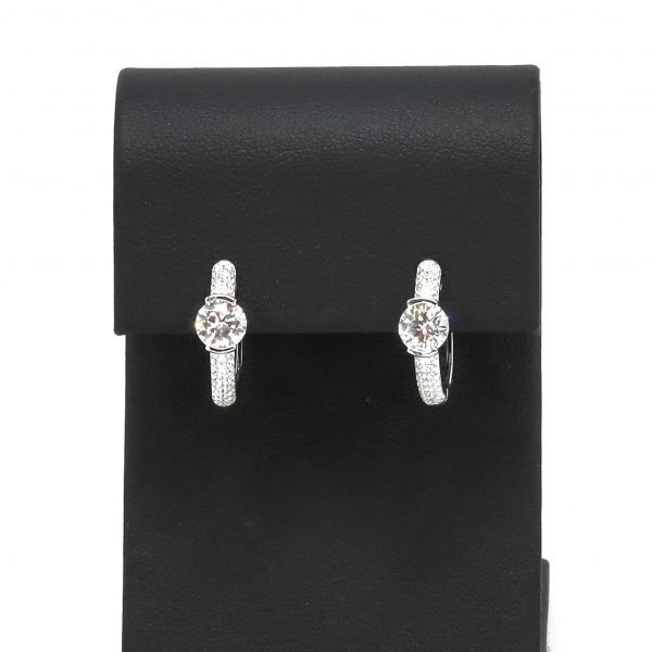 Solitaire Silver Earrings with Cubic Zirconia pave set Stones
