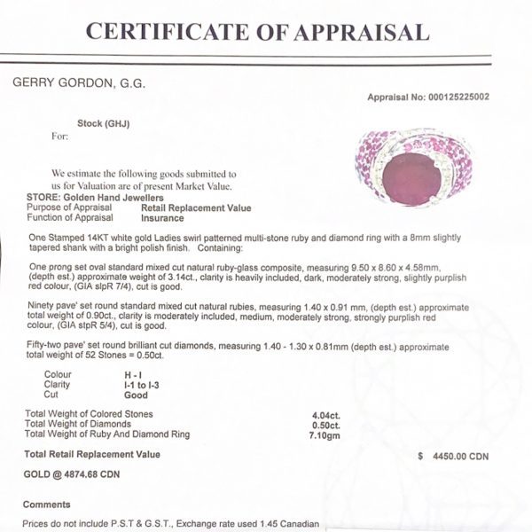+Appraisal included #273 RING IS APPRAISED FOR $4,450.00