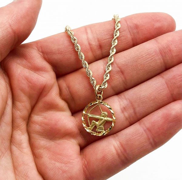 Diamond cut and Brush Sagittarius Zodiac sign pendant.