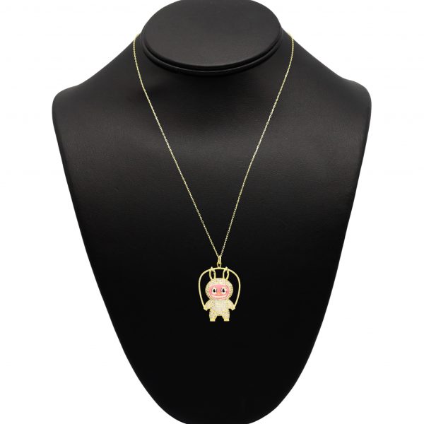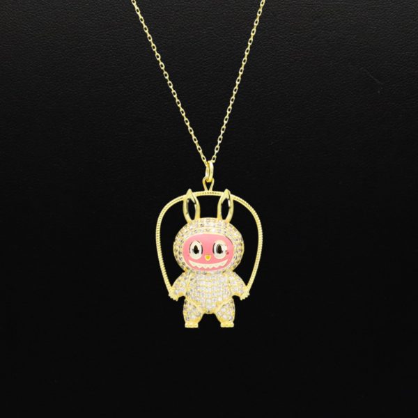 Colour Enamel And Cubic Zirconia Stone Labubu Pendant Set