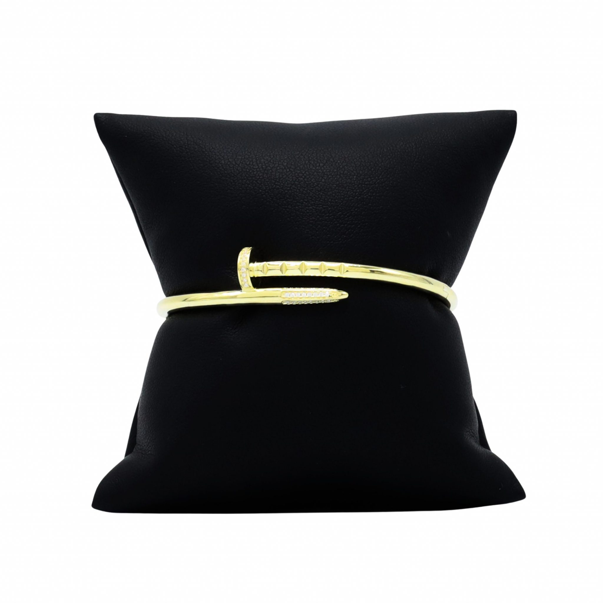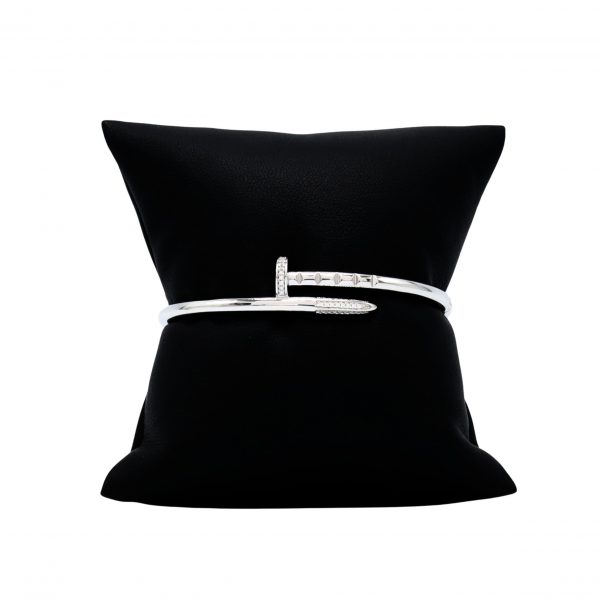 Silver Cubic Zirconia Stone Hollow Nail Bangle Bracelet!