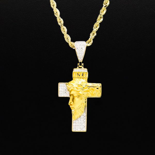 Small Jesus Cross Moissanite Yellow Silver – Silver Pendant