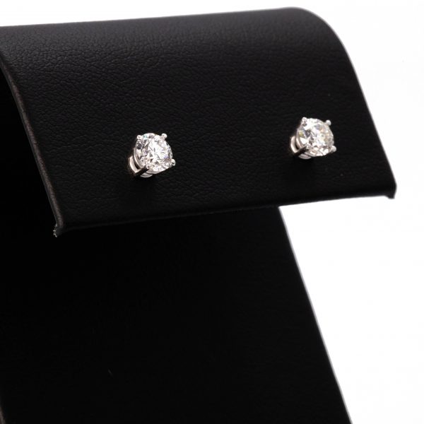 This pair includes 2 round brilliant cut lab grown diamonds in four claw settings
