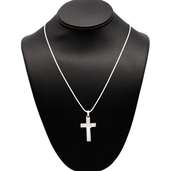Squared Flat Cross With Jesus – Silver Pendant