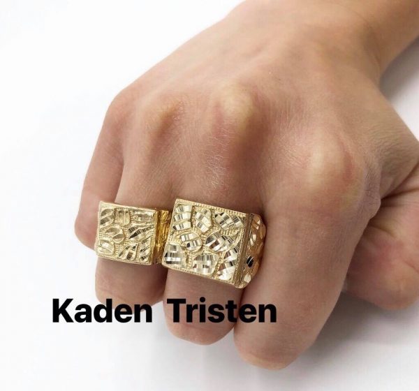 Solid 10 KT yellow gold squared modern nugget ring with unique diamond cutting throughout the ring made in shop!