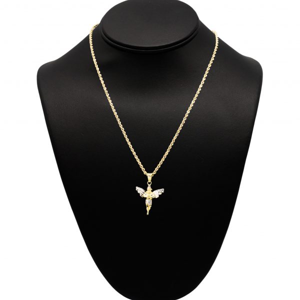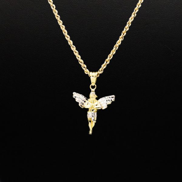 Two tone Angel pop out pendant with flat backing. Pendant is hollow inside.