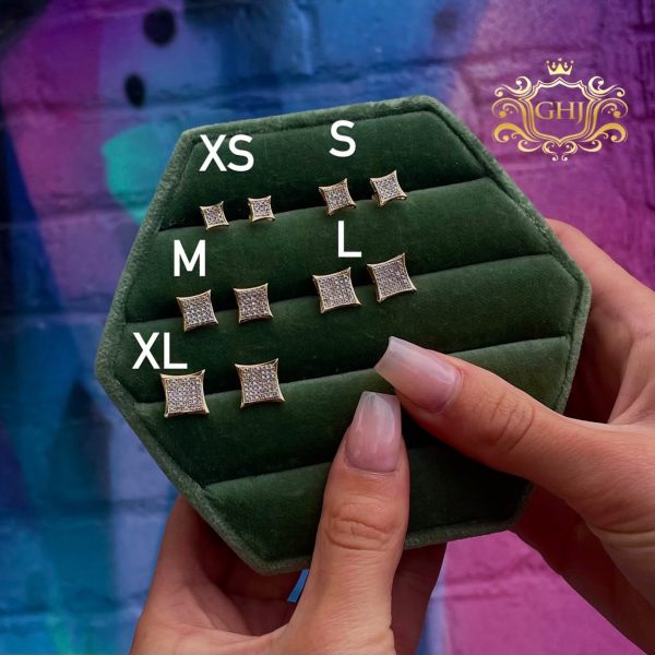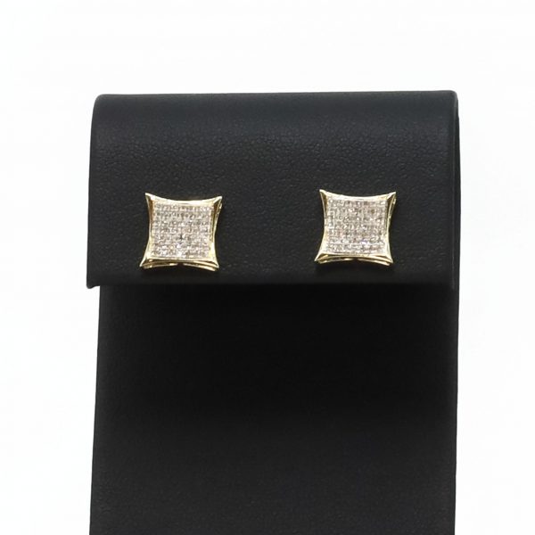 Square Cluster Genuine Diamond Studs with yellow gold backings