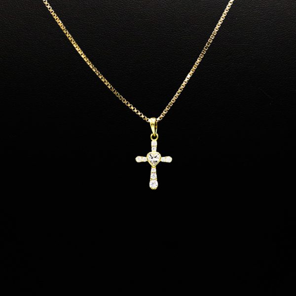Yellow Silver Small Heart Cz Cross – Silver Pendant