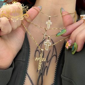 Large CZ Nugget Cross 10k- Pendant